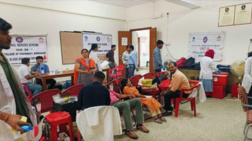 NSS Units 34 organized a Blood Donation Drive on 09th April 2025 at KLE College of Pharmacy, Bengaluru, collecting 62 blood units.
